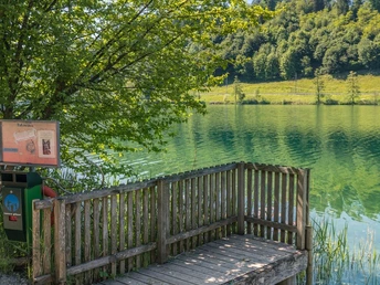 Sur le côté nord, le chemin de promenade suit entièrement une voie goudronnée. La petite montée juste après avoir traversé la voie ferrée offre une merveilleuse vue sur le Pilatus, tandis que vous passez devant des prairies où paissent des vaches. La seconde moitié du retour est ensuite plane et longe la rive jusqu'au restaurant Seehüsli.