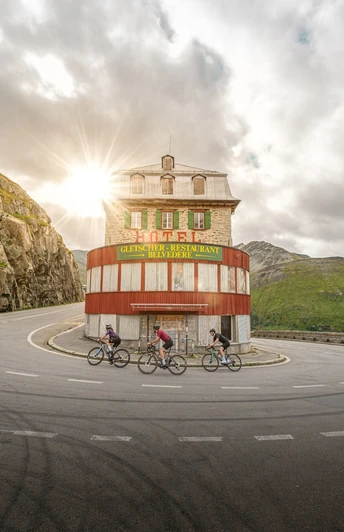 Le parcours commence à Andermatt avec la première montée vers le col de l'Oberalp. La pente est modérée (en moyenne environ 6 %), le revêtement excellent – idéal pour s’échauffer. Au sommet, une superbe vue sur le phare rouge, qui marque symboliquement la source du Rhin, t’attend. La descente vers Disentis est rapide et bien aménagée. De là, commence la longue mais régulière montée vers le col du Lukmanier, avec une pente moyenne de 5–6 %, le plus doux des quatre cols. Cependant, un vent contraire fort peut devenir un défi. Au sommet s’ouvre la vue sur le massif tessinois, avant une magnifique descente vers Biasca. À partir de Biasca, la route est plate jusqu’à Airolo, suivi de la montée raide vers le col du Nufenen – avec des rampes jusqu’à 13 % et une moyenne de 8–9 %, le tronçon le plus dur du parcours. Les derniers kilomètres sont d’altitude élevée, souvent venteux. Au sommet, une vue grandiose sur les glaciers des Alpes valaisannes t’attend. La descente vers Ulrichen est techniquement exigeante, avec des virages serrés et un revêtement parfois rugueux. À Ulrichen commence la montée finale vers le col de la Furka. Le versant ouest monte constamment avec 7–8 %. La vue sur les lacets et le glacier du Rhône est spectaculaire et récompense les efforts. La descente vers Andermatt est rapide, sinueuse, et demande un pilotage précis – une conclusion parfaite à ce circuit alpin.