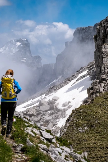 Chaussures de randonnée avec une bonne semelle ou chaussures de trekking, veste de pluie, boisson, nourriture, éventuellement des bâtons.