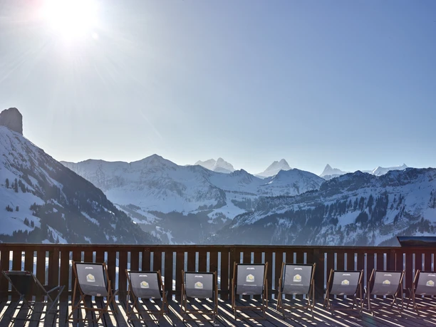 Les premiers mètres de dénivelé sont effectués durant cette randonnée d'hiver avec le train Bretzeli de Marbach jusqu'à Marbachegg. Une fois arrivé, la vue particulière vous attend - entre Schibegütsch et Hohgant, la vue s'ouvre sur les Alpes bernoises avec le Schreckhorn, le Finsteraarhorn et l'Eiger. Prenez un instant pour vous asseoir sur le transat de la terrasse ensoleillée de l'auberge de montagne et offrez-vous un renforcement pour le parcours à venir.