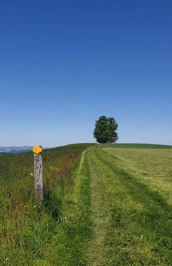 La randonnée commence au cœur du village d'Hergiswil près de Willisau. Après une courte montée à travers le quartier, on atteint le premier banc de repos et on est récompensé par une belle vue sur le village et la région de Napf. Encore quelques mètres de dénivelé sur la colline et la place de feu "Hickern" se présente à nous. À "Ober Hickeren" le chemin descend dans la vallée de Nollen. De là, de beaux chemins de campagne nous mènent jusqu'à "Birchbüel". Au panneau indicateur "Birchbüel", une courte excursion vers la chapelle Bösegg vaut la peine. Nous marchons à flanc de colline en direction de "Honegg" et profitons des belles vues sur les Alpes de Suisse centrale ainsi que sur le village d'Ufhusen en arrière-plan avec la chaîne du Jura. Après le beau tilleul de Honegg, le chemin descend dans la vallée. Un court tronçon longe la route principale avant de revenir tranquillement le long du ruisseau Enziwigger vers Hergiswil. Sur ce tronçon, on passe devant deux belles aires de grillades avec WC. D'abord à l'aire de grillades "Breiten" et juste avant le village à l'aire de grillades "Blüomatte".