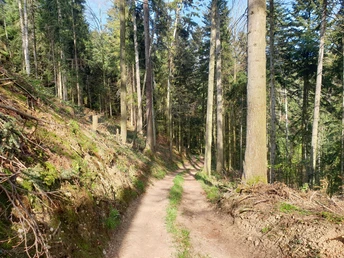 Nous commençons au centre du village de Hergiswil à 646 m et suivons le panneau en direction de Lindenegg. Après un court tronçon sur l’asphalte, nous tournons à gauche et suivons le chemin à travers champs et pâturages. Pour faire une pause, nous regardons en arrière et profitons de la belle vue sur le village. En passant devant une petite « maisonnette du marché », la montée raide à Lindenegg à 839 m est récompensée par une belle vue sur les « Höger » de la région du Napf. Après 10 minutes, nous atteignons les fermes d’Unders-Chapf. De là, nous suivons le panneau Chanzelsagen. Le chemin traverse souvent hors des sentiers battus puis descend tranquillement à travers la forêt jusqu’à la vallée de Rohrmatt. De là, nous longeons la route jusqu’à Chanzelsagen. Nous nous restaurons dans le restaurant typique Sagali. Bien renforcés, nous attaquons la montée suivante en direction de St. Joder et arrivons au point le plus haut du parcours « Seeblenschür » à 910 m. De là, nous descendons principalement sur de larges sentiers naturels vers Hüebeli en profitant de la vue sur la chaîne du Jura et la région du Napf. En passant devant le légendaire téléski de Hüebeli, nous atteignons le panneau Opfersei et marchons ensuite en direction de Hergiswil. Au-dessus de la scierie, le chemin passe devant un site de feu. Ensuite, il descend tranquillement le long du ruisseau Änziwigger jusqu’au village de Hergiswil.