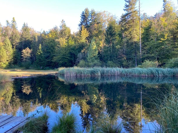 Après l'Eberenwald et l'Eberenallmend, vous traversez le Melbach. Vous vous trouvez maintenant sur le sol de Nidwald. Au premier Heimet de Nidwald, vous quittez le chemin de randonnĂ©e balisĂ© et suivez la petite route qui descend vers la route cantonale. Le panneau indicateur près de l'arrĂªt du car postal indique la direction de Chernwald. Quittez donc la route Ă gauche dans la forĂªt et suivez les panneaux jusqu'au Gerzenseeli. Ici, vous pouvez vous reposer et vous restaurer sur les bancs.