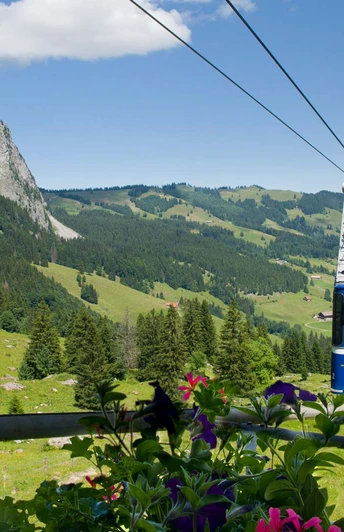 Les Grossen Mythen offrent bien plus qu'une simple randonnée au sommet : la randonnée circulaire autour du symbole de Schwyz promet des vues fantastiques et des observations d'animaux sauvages. Le départ se fait après la montée en téléphérique Holzegg depuis la station supérieure « Holzegg » en direction de « Zwüschet Mythen ». Sur le trajet de « Günterigs » vers « Hasli », une vue exceptionnelle sur les montagnes et les lacs de l'Innerschwyz s'ouvre. La randonnée traverse le « Mythenbann », la plus ancienne réserve de chasse de Suisse datant de 1492, où, selon la saison, on peut voir des chamois, des aigles et des marmottes.