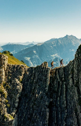 Ensuite, le parcours continue le long du spectaculaire Gräfimattgrat en direction du Schingrat et Wagenleis. À cet endroit se trouve le point clé de la randonnée : une brèche rocheuse spectaculaire avec une corde de sécurité – uniquement pour les non-vertigineux et assurés !