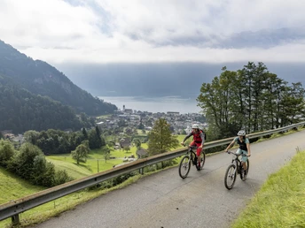 Astuce : avec le vélo, retour par le chemin du lac et une belle promenade en bateau sur le lac des Quatre-Cantons jusqu’à Brunnen.