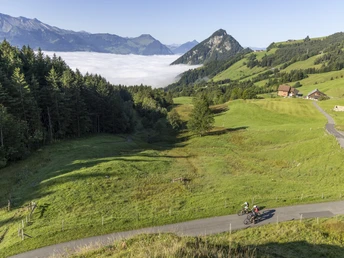 Après la partie plate le long du lac des Quatre-Cantons, l’ascension du col de Gätterli commence à Gersau. La route passe par l’alpage d’Egg et Gottertli jusqu’à Timpelweid. Juste avant l’Urmiberg, il y a un court passage à pousser. Ensuite, la descente rapide mène dans la vallée et le long de la Muota jusqu’au point de départ.