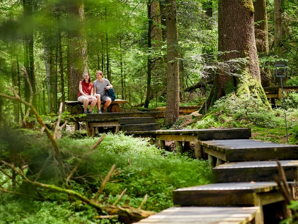 Après la tempête Lothar en 1999, une parcelle forestière sous Heiligkreuz a renoncé à l'exploitation traditionnelle du bois et un ponton de 500 m a été construit en bois "Lothar", légèrement surélevé à travers une forêt féerique de myrtilles et de fougères. Ici, vous êtes sorti du quotidien saturé de stimulations et agité, vous rencontrez la création de manière sensorielle et êtes doucement guidé par le symbole de l'escargot vers les thèmes que le parcours représente : devenir, être et passer. Après un court séjour, vous vous sentirez renaître et renforcé pour la vie quotidienne.