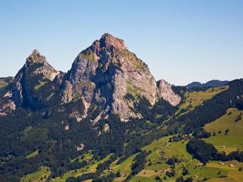 Nous profitons d'abord de la vue sur plus de dix lacs suisses et d'innombrables sommets alpins. Nous suivons le chemin panoramique du Fronalpstock qui nous mène à la descente en direction de Furggeli. De là , nous continuons la descente vers le calme Frontal et suivons le ruisseau de montagne jusqu'à notre retour au village de montagne Stoos. En passant par le Stoos-Seeli, nous atteignons à nouveau notre point de départ à la station du téléphérique.