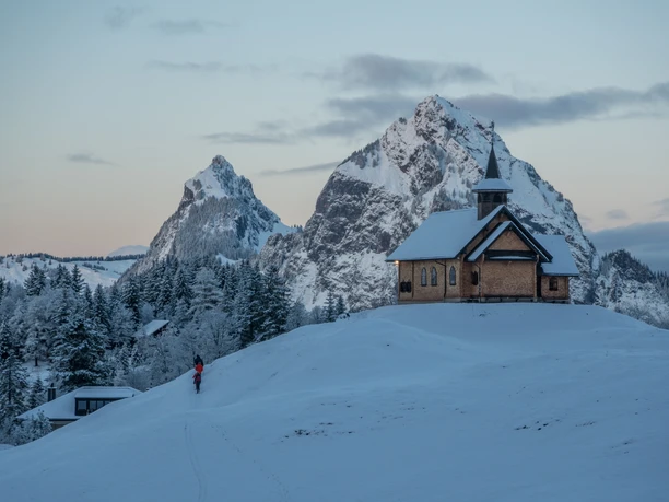 À travers le paysage vallonné, on passe devant plusieurs fermes. En bas, loin en dessous, se trouve la vallée de la Muota, au-delà du cirque de la vallée s'élèvent les Mythen et les montagnes de la vallée de la Muota. Les montées sont toujours douces, y compris celle vers Brunnerboden, le point culminant de la randonnée. Le point de départ est la station de montagne de l'ancien funiculaire de Stoos. On marche tranquillement à travers la nature silencieuse et paisible jusqu'à la station de base du télésiège Klingenstock. Là, la vie animée de la station de sports d'hiver vous accueille à nouveau et vous avez le choix entre plusieurs restaurants de montagne avec terrasses ensoleillées.