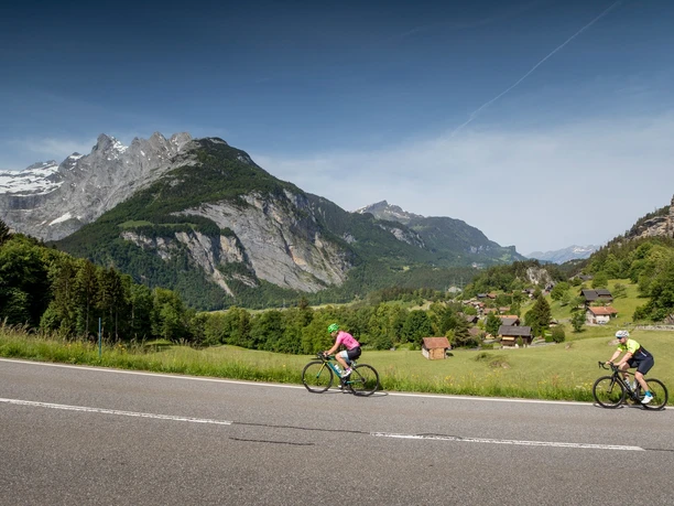 Un nom bien choisi : là où le chemin semble grimper vers le ciel, la pente est éprouvante, mais récompensée par une vue céleste. Un court arrêt offre une vue sur la vallée et les kilomètres parcourus jusqu’à Gadmen. Il reste environ 4 kilomètres et 400 mètres de dénivelé jusqu’au col de la Susten. Par la Bäregg, passant par le Steinsee et la fromagerie alpine Steingletscher, on atteint finalement le tant attendu col à 2260 m d’altitude. À partir de là , c’est uniquement dans la descente : d’abord avec quelques grands virages jusqu’à Sustenbrüggli, où le restaurant Sustenbrüggli invite à une petite pause avant la dernière section. À partir de là , la route descend droite et régulière sur environ 10 kilomètres. Pour finir, le parcours descend en larges courbes sur deux kilomètres et perd mille mètres d’altitude jusqu’à arriver à Wassen, la destination finale.