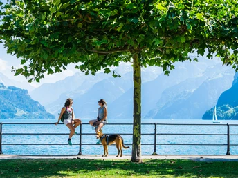 Le charme du Sud - De Brunnen via le Waldstätterquai, la place des Suisses de l'étranger et la route Seestrasse jusqu'à Brünischart, où débute le sentier de montagne à travers la forêt au charme méditerranéen et la magnifique vue panoramique. Vous rejoignez Vitznau via Gersau.