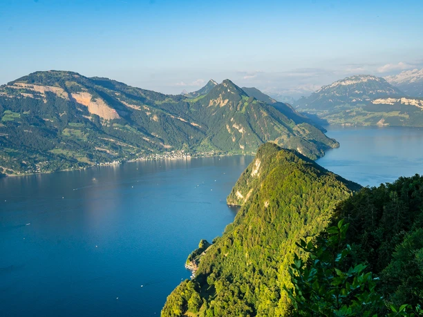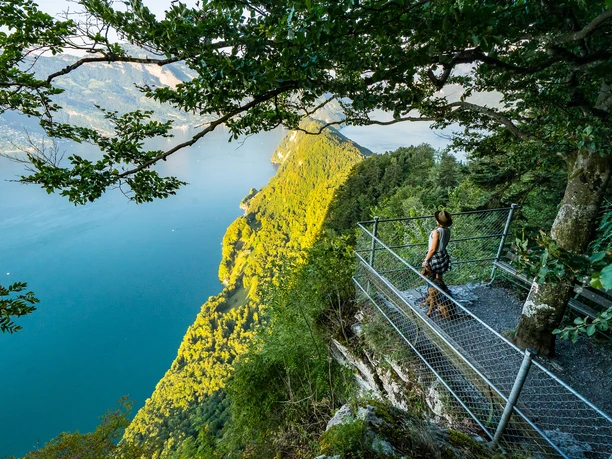Le long du sentier rocheux sur le Bürgenstock, qui offrait aux dames et aux messieurs du monde une promenade alpine avec vue sur la ville de Lucerne. En passant par le lieu de pèlerinage de St. Jost jusqu'aux rives d'Ennetbürgen, Buochs et Beckenried.