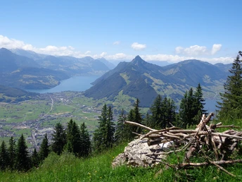Le téléphérique Rotenfluebahn emmène les amateurs de randonnée gourmande au point de départ. Le plaisir se manifeste sous plusieurs formes en chemin. À mentionner tout d'abord : le panorama : à plusieurs reprises, la vue s’ouvre sur le bassin de Schwyz et le lac des Quatre-Cantons, mais aussi sur les sommets environnants. Sur le tronçon entre Rotenflue et Zwüschet-Mythen, les gourmands et assoiffés trouvent différents restaurants de montagne accueillants. De plus, le parcours descend légèrement ici.