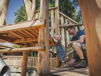Due parchi giochi e la giostra del Ballenberg offrono un intrattenimento ricco di azione per i piccoli esploratori del museo . Il recinto per gli animali domestici non è meno eccitante. Che si tratti di capre, galline o conigli, tutti non vedono l'ora di accogliere i visitatori! Altri 200 animali da fattoria come cavalli, buoi, muli, oche, anatre e pecore sono i benvenuti in tutto il parco.