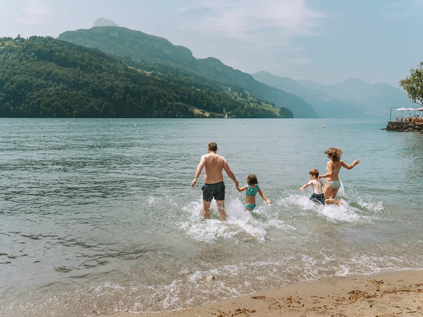 Il Seebadi si trova vicino al centro del paese. Dalla stazione dei battelli di Brunnen, si può raggiungere il Lido percorrendo il lungolago, passando per il porto di Föhn, in circa dieci minuti a piedi. Sono disponibili parcheggi per auto a pagamento.
